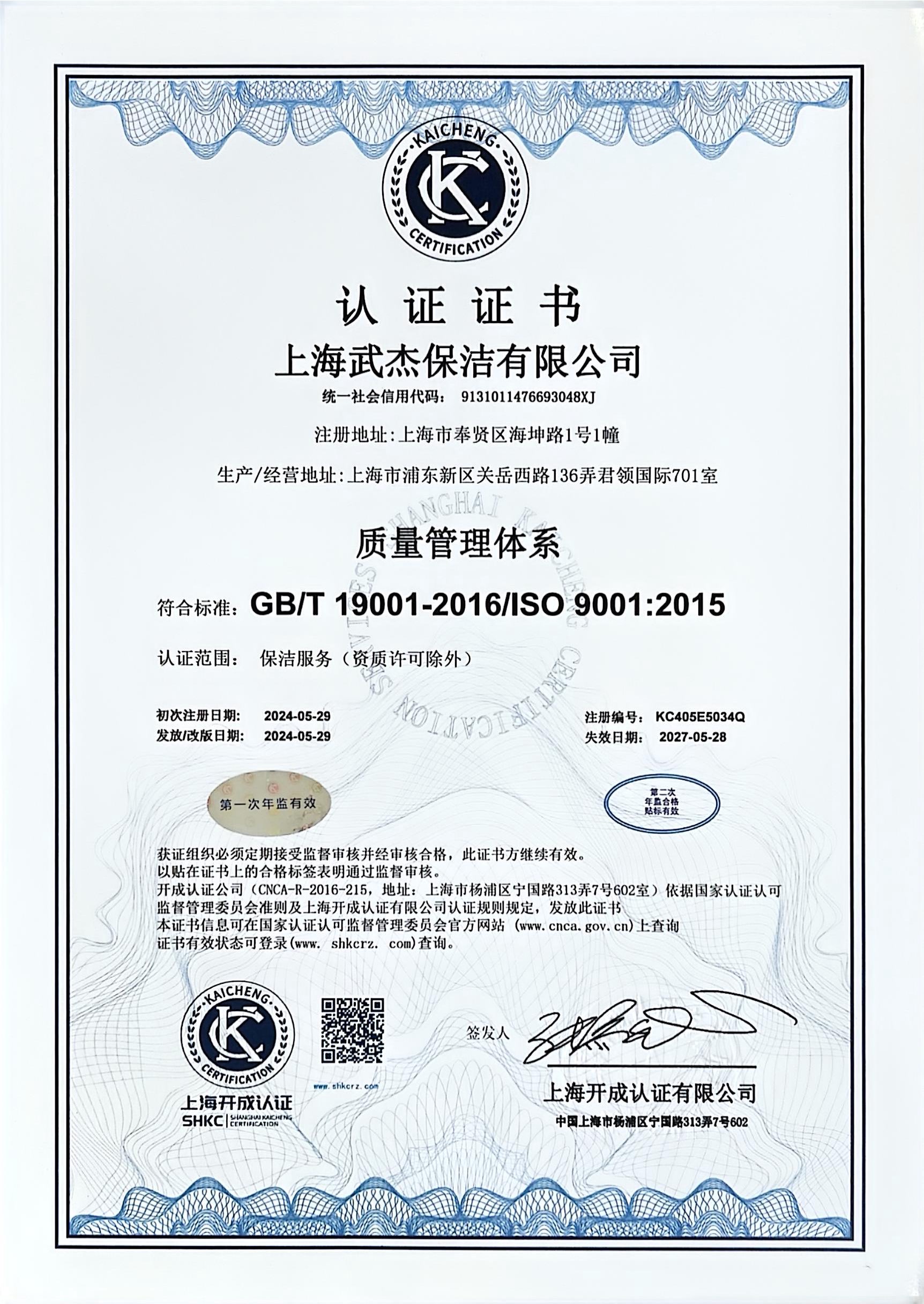 质量管理体系认证证书