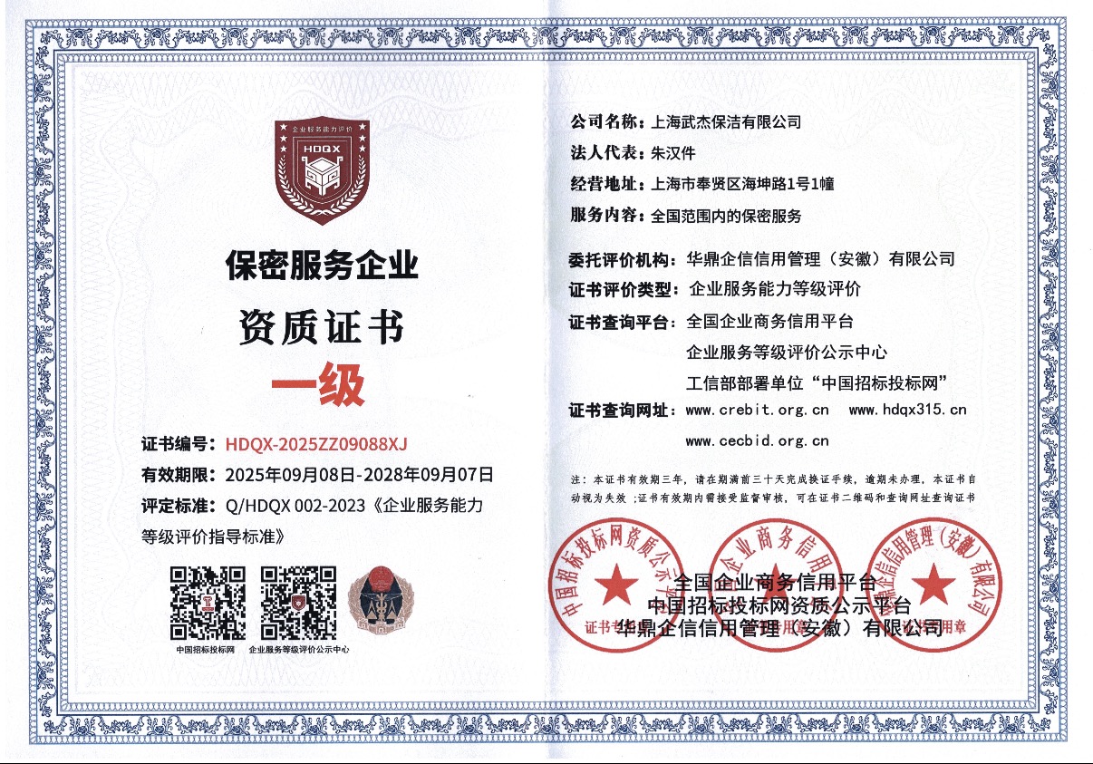 保密服务企业资质证书一级